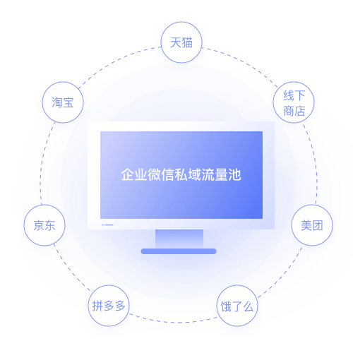 電商或零售行業,原有的會員或CRM系統,存儲了大量客戶信息。 其中最重要的是客戶手機號,我們提供了高效的工具,能快速把手機號對應的個人微信, 引導到商家企業微信中進行統一管理。